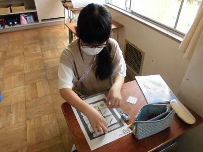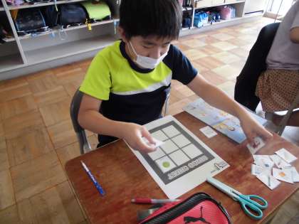 シートに文房具カードを並べ、BINGOをして楽しんで学ぶことができました。
