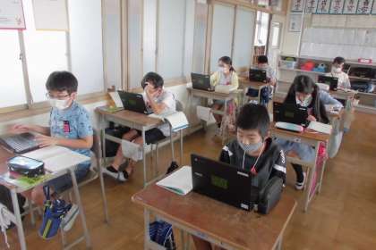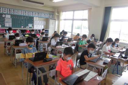今日の社会の様子です。一人ひとりのパソコンを操作して、水産業の学習についてまとめました。文字を打つのは大変でしたが、色を変えたり、文字の大きさを変えたりしながら楽しんでまとめました。