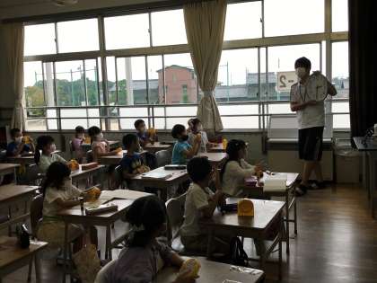 今日の算数では、時計の読み方の学習をしました。プリントで、長い針と短い針の役割や、時計の読み方を学習した後、算数セットの時計でみんなでいろいろな時刻を作って練習をしました。