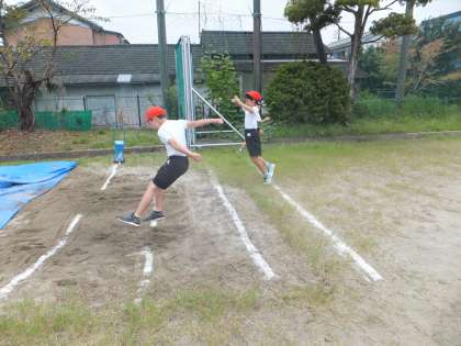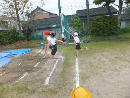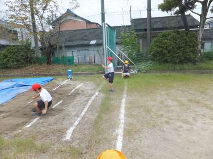 走り幅跳びでは、踏切の足が踏切線に合うように、助走の仕方に気を付けて練習ができました。大幅に記録を伸ばすことに成功した子もいました。