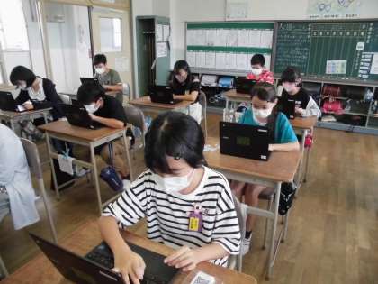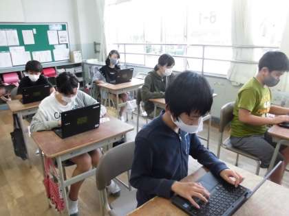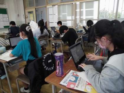 わからない単語は、picture dictionaryを使ったり、タブレットで調べたりして学習しました。タブレットで調べた児童は、発音も確認できるので、発表のために発音も練習していました。