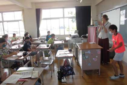 今日は前回記入した紹介カードを使用して、身近な人を紹介するスピーチをしました。その人の職業やできることを英語で話しました。彼「He」彼女「She」も使い分けて練習をしました。
