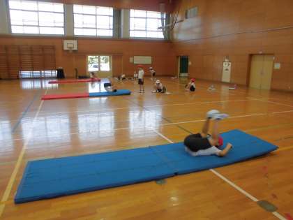 ラジオ体操やマットあそびの学習をしました。