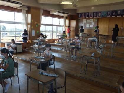音楽の授業では、リコーダーの「レッツゴーソーレ」のテストがありました。タンギングや指づかいも徐々に難しくなってきましたが、どの子も一生懸命頑張っていました。