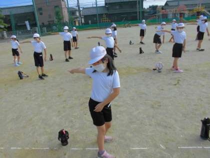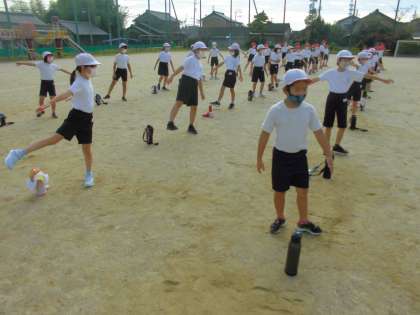 今日から運動会練習が本格的にスタートしました!今日は3・4年生合同でのダンス練習です。運動場で距離を取りながら、先生たちの踊りを見て、頑張って覚えました。3週間後には本番です。頑張ろう!