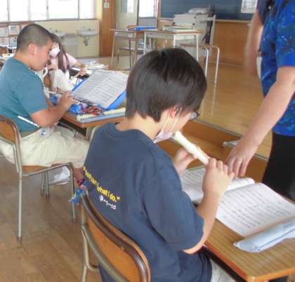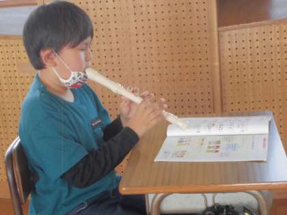 ひなたんの音楽で自分の学年の曲を練習したあとに、発表をしました。友達の演奏を聴くことができました。