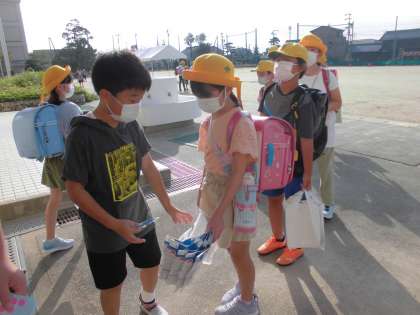 たくさんの児童が資源をもってきてくれました。
