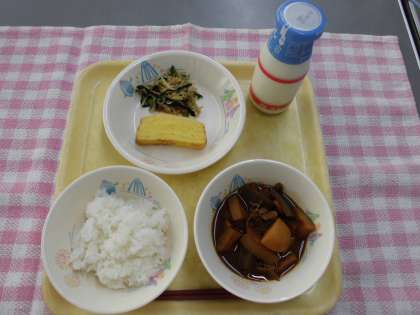 ご飯・牛乳・みそ煮・厚焼き卵・鉄骨和え