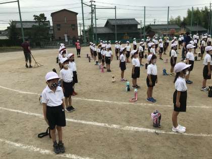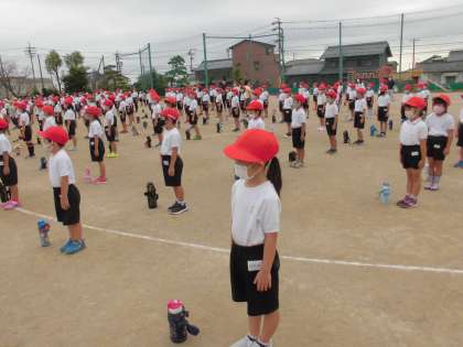 今日は1時間目に運動会の全校練習がありました。開会式の練習では、みんな指先まで意識して、気をつけの姿勢や行進をしようと頑張っていました。