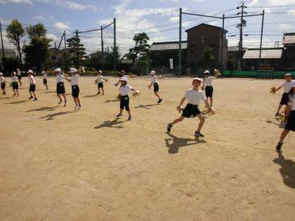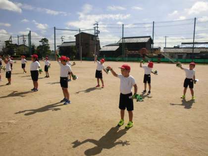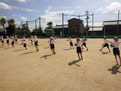 1組は黄色、2組は緑色です。みなさん元気いっぱいに踊ることができました。