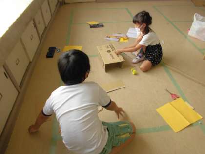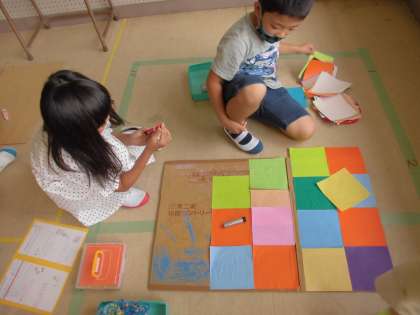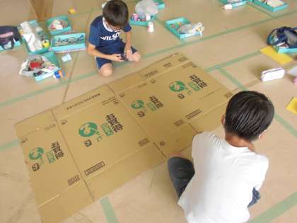 1年生に紹介したり、実際に遊んでもらったりしようと子どもたちが準備をしています。