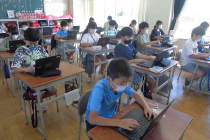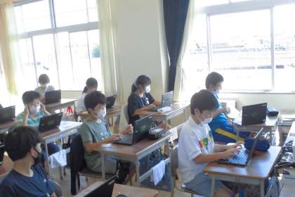 パソコンを使ってタイピング練習をしています。ゲーム感覚で行えるソフトを使って楽しく練習をしています。