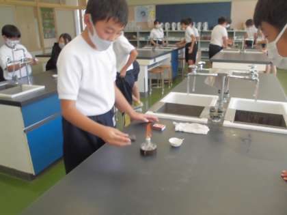 本日は理科でマッチを使ってアルコールランプに火をつけました。つける練習、消す練習を通して理科の実験道具に慣れることができました。