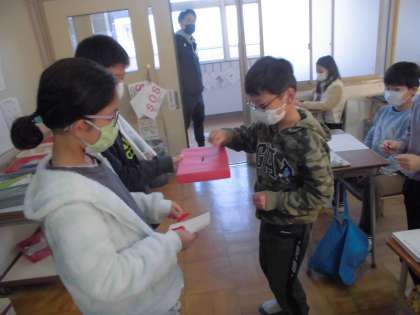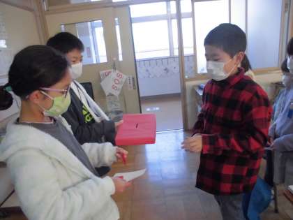今日の朝、赤い羽根共同募金の回収に、運営委員会の子たちが来てくれました。募金に協力してくれてありがとうございました。
