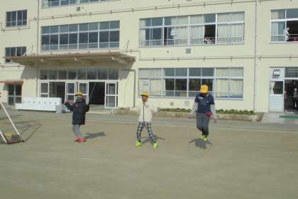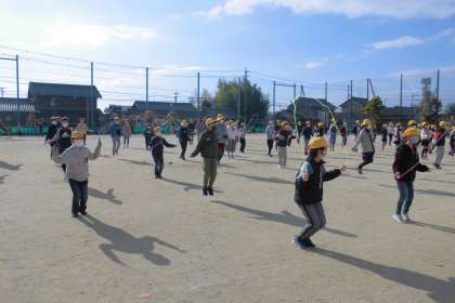今日は、リズムなわとびがありました。音に合わせて両足跳び、開閉跳びをしました。体育委員、運営委員の子のお手本を見ながら、楽しく跳んでいました。