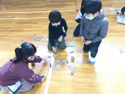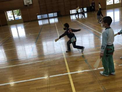 今日は生活科で、昔から伝わる遊びの1つとして、羽子板をみんなで練習しました。めんこ遊びにも進んで挑戦していました。