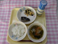 給食には「ヘルシーマーボー豆腐」と普通の「マーボー豆腐」があります。今日は「ヘルシーマーボー豆腐」ですが、「ヘルシー」がつく時とつかないときの違いを知っていますか?普通の「マーボー豆腐」には豚ひき肉が使われていますが、「ヘルシー」がつく日は豚ひき肉だけでなく、大豆を砕いてひき肉に見立てたものが入っています。大豆はたんぱく質やカルシウムが豊富で油脂が少ないので「ヘルシー」と名付けられています。食べてみて違いが分かりましたか?