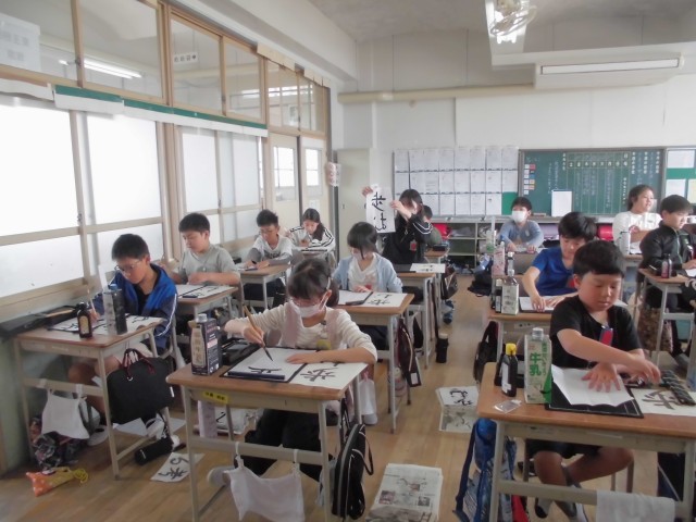 今日の書写の時間は、毛筆で「歩む」という字を練習しました。