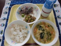 教室からは、みんなの笑顔と楽しそうな声があふれていました。モリモリ食べて、午後からも元気に過ごそうね!ごちそうさまでした!