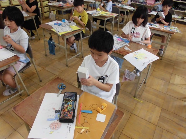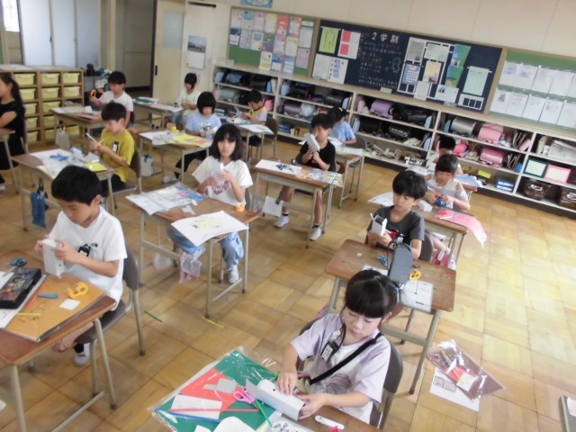 2年生の図工で、動く仕組みを考える「ぱたぱたストロー」に取り組んでいます。