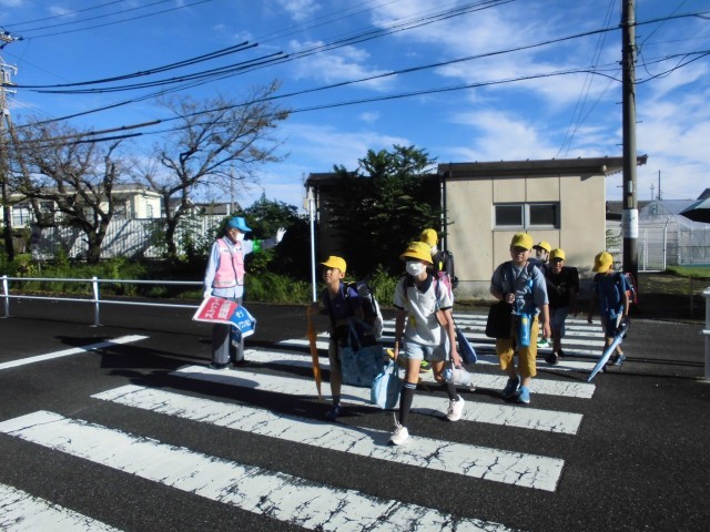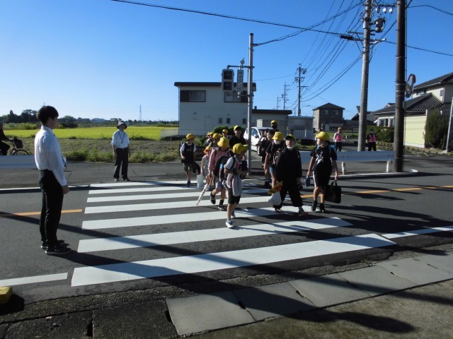 10月に入りました。今日は、土日の天気が嘘のような青空になりました。気持ちの良い天気の中、今日も地域の方に見守られ元気に子供たちが登校してきました。