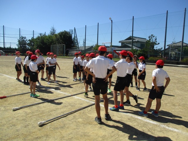 5年生と6年生が競争遊戯「朝西無双!竹取物語 秋の陣 2025」の練習を行いました。