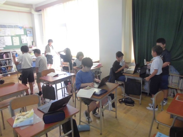 国語の学習「ごんぎつね」では、各場面の登場人物の気持ちを丁寧に読み取ってきました。今日の授業では、学習のまとめとして、物語の最後の場面について感想を考えました。子どもたちは、これまでの学びを活かし、ごんや兵十の行動の裏にある気持ちを深く考えた感想を書き、友だちと活発に共有しました。初めて読んだ時に書いた感想と比べると、物語を深く読み込んだことで生まれた、思いのこもった考えがたくさん見られ、学びの深まりを感じる時間となりました。