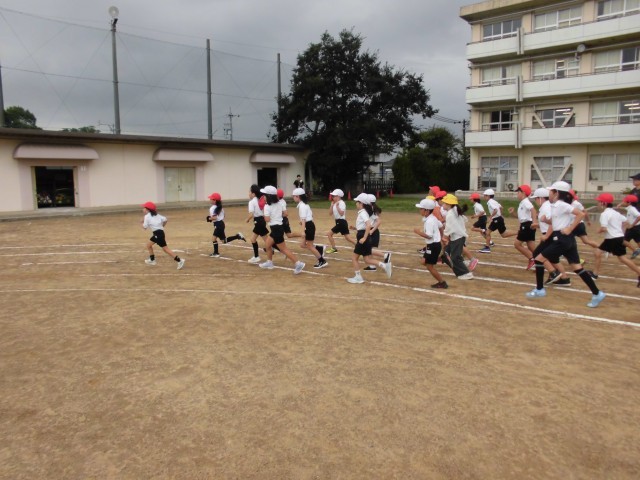 運動会の徒競走の練習をしました。今年から距離が長くなり、子どもたちも練習から本気で走っていました。本番もその調子で頑張ってほしいです!
