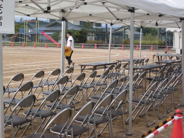 朝早くから職員が出勤し、運動場の最終準備を行いました。