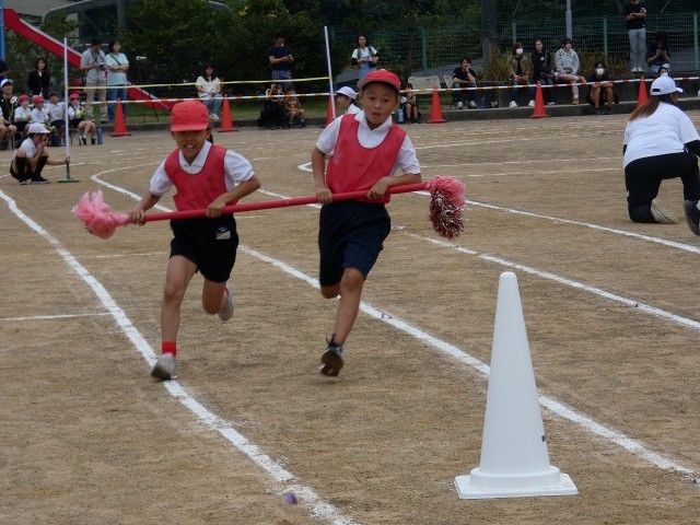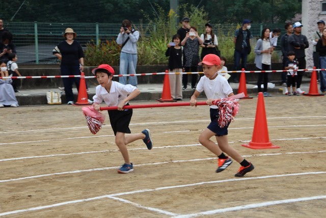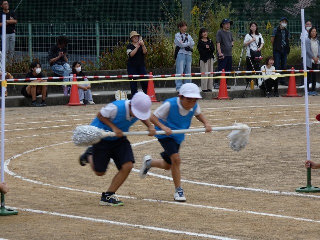 今日の運動会では、4年生は徒競走で力強い走りを見せ、「朝西ハリケーン」では、ペアで棒をもって声を掛け合い、息の合ったチームワークを発揮してくれました。赤組も白組も、全力を尽くす姿はとても立派でした。