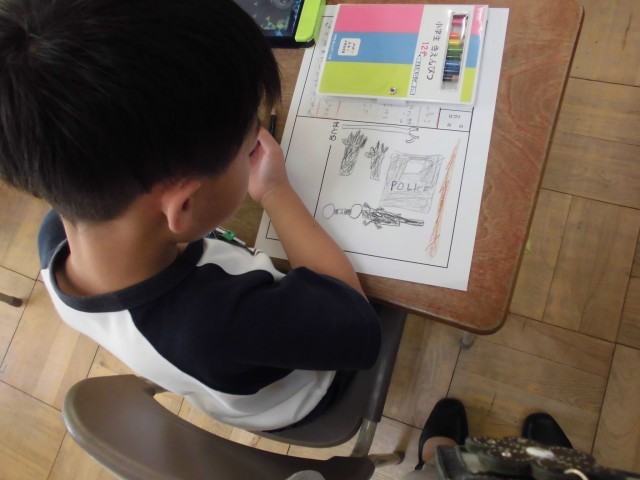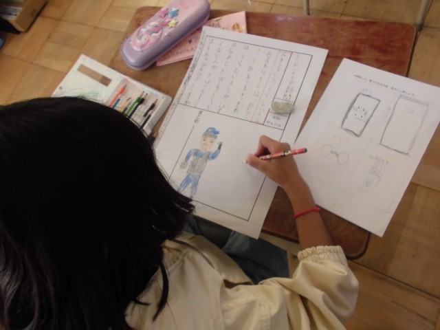 おまわりさんの話や見学したときの中から自分がみんなに知らせたいことをまとめています。