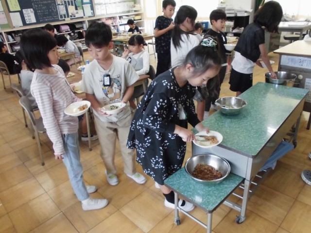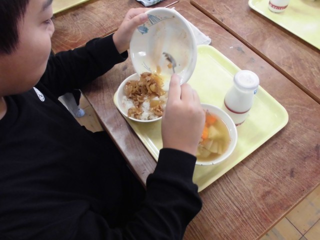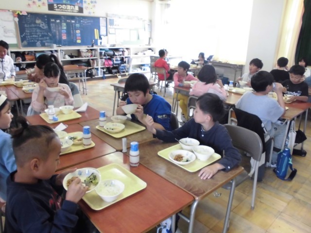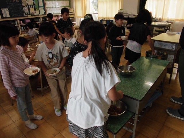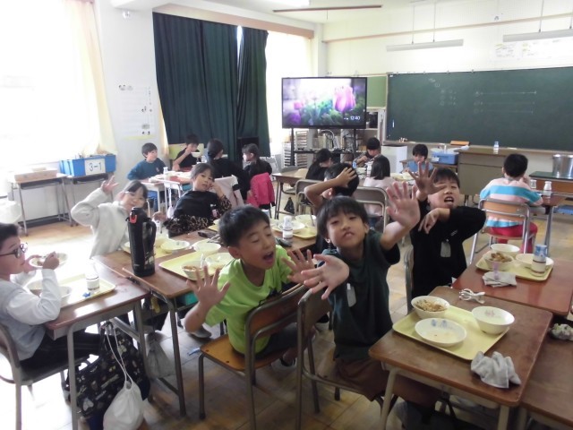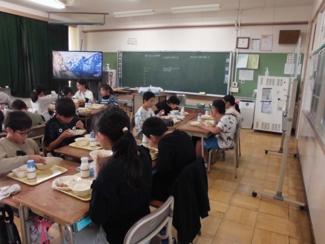 今日もみんなで食べる楽しい給食の時間となりました。