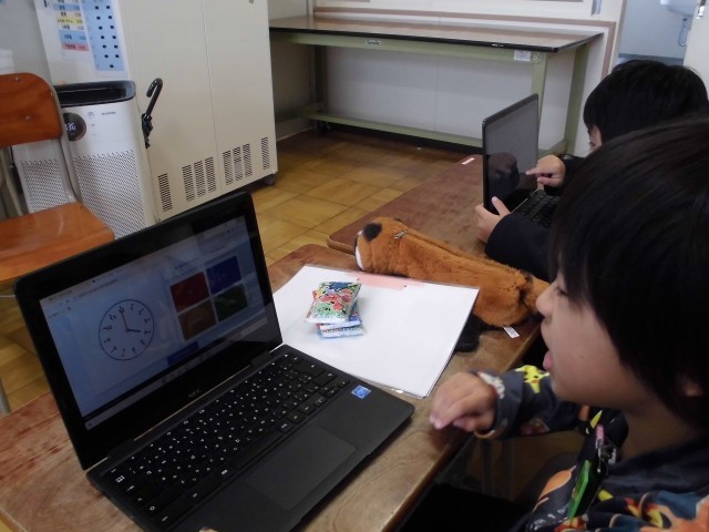1年生がテストに向けて時計の復習をしました。