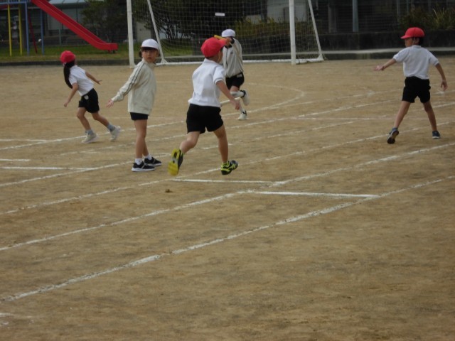 体育では現在リレーの学習に取り組んでいます。