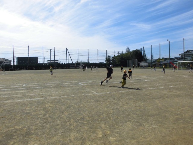 過ごしやすい秋の気温と気持ちの良い青空のもと、外遊びにぴったりの季節を迎えました。「青空タイム」には運動場に、1年生から6年生までの子どもたちが集まってきました。