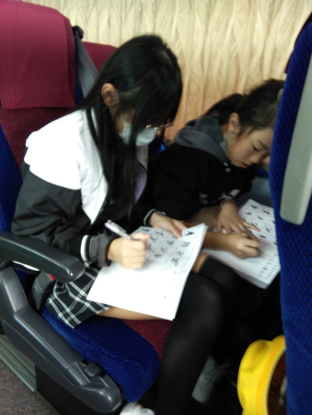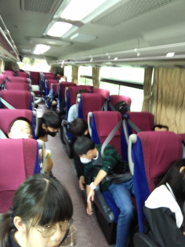 次の目的地まで、バスの中でガイドさんがクイズを出してくれています。全員、集中して考えています。バスの中でも頭使ってます!