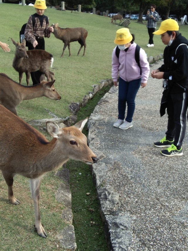 興福寺へ向かう道中、鹿せんべいをあげる鹿タイムです。