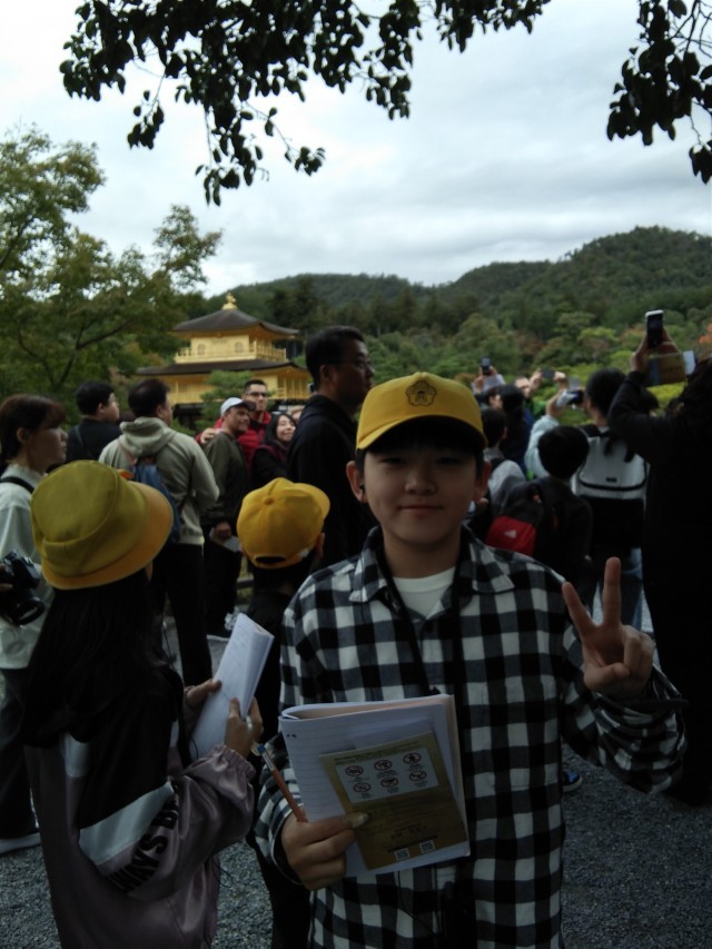 金色に輝く本物の金閣を見られて嬉しそうです。