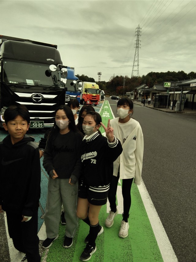 草津PAでのトイレ休憩です。帰りのバスはDVDを見て過ごしています。
