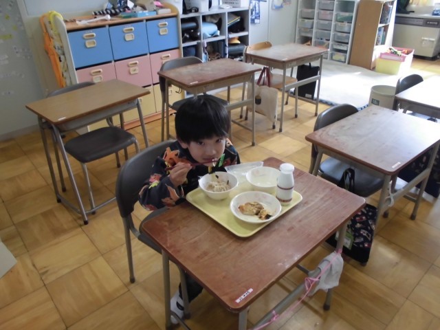 「いただきます」の前から、スープも麺も空っぽのクラスが!どのクラスでも、最高の笑顔で美味しそうに味わう子どもたちの姿が見られました。