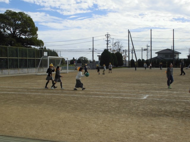6年生が指令台の前で「鬼ごっこやる人!」と声をかけると他の学年の子もたくさん集まってきました。いろんな学年を巻き込んで一緒に遊ぶ姿は朝日西小ならではです。先生と一緒にサッカーを楽しむ子や体育のポートボールの練習を楽しむ子など体を動かして遊ぶ子がたくさんいました。これから寒くなりますが、外遊びで寒さに負けない丈夫な体を作っていきましょう。