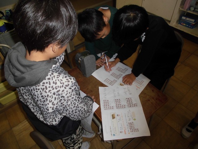 各自が様々な「同じ数のまとまり」に注目し、お互いに説明し合っていました。