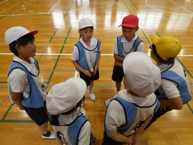 これまでに身に付けた基本的なパスやドリブルの技や、チームで考えた作戦が本当に通用するのかをテストする、初めての試合をしました。