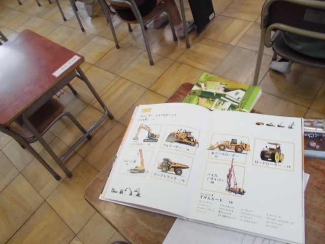 図書館の本の中から、みんなに教えたい自動車を選んでいました。