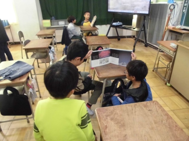 今日は、3年生と一緒になかよし読書をしました。