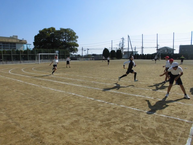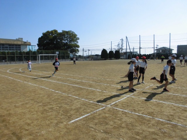 秋晴れの気持ちの良い運動場で、今日の体育はリレー最後の日でした。