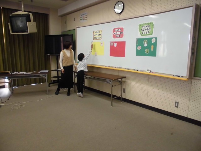 今日は、食育について学びました。食べ物の3つのはたらき「主に体をつくるもとになる・主に体の調子を整える・主に体のエネルギーのもとになる」を知ることができました。「嫌いなものも頑張って食べてみようかな。」「ひと口でも食べる。」と言っている子どもたちもいました。これからも好き嫌いなく何でも食べれるように頑張ろう。