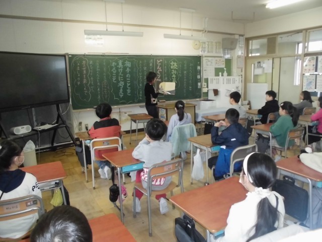 ボランティアの方の豊かな表現力と温かい語り口に、教室は静まり返り、どの子も真剣に、そして目を輝かせながら聞き入っていました。