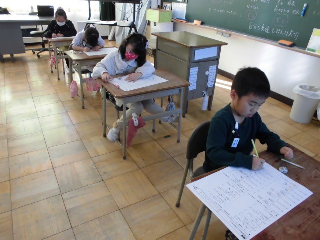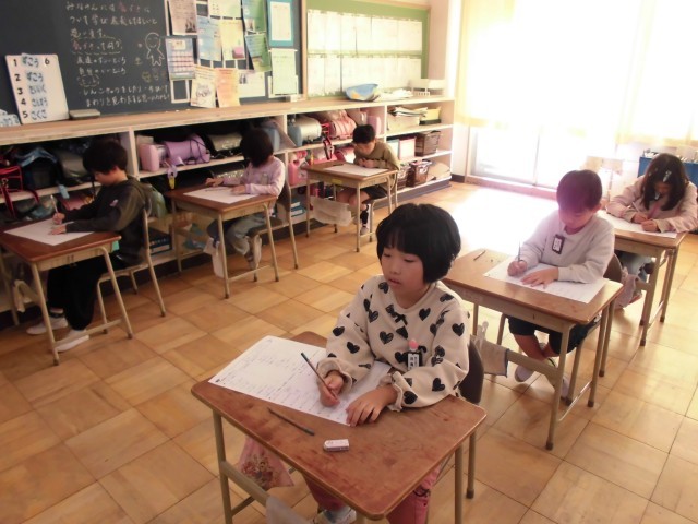 今まで習った漢字を思い出しながらチャイムが鳴るまで頑張りました。