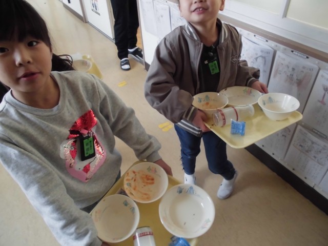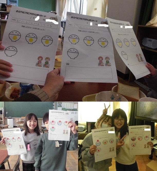 また、先週の食育の勉強で食べ物の大切さを学んだことをきっかけに、今週は「おさらぴかぴか週間」に取り組みました。「お皿を1枚でもピカピカに!」と頑張り、シールを貼ってもらったカードを「うめぼしごはんみたい!」と嬉しそうに見せてくれました。
